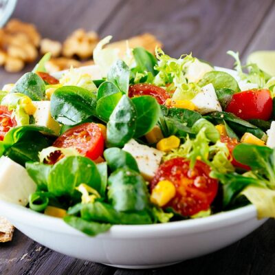 A Greek salad is a traditional Mediterranean